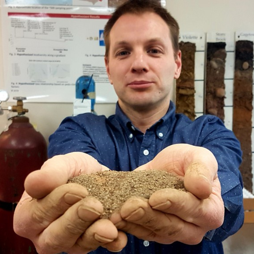 Dr Louis-Pierre Comeau est un scientifique chercheur au sein du gouvernement fédéral du Canada. Ses recherches portent sur le paysage et le carbone des sols. Plus précisément, il étudie les moyens de reconstituer la matière organique des sols agricoles et forestiers.